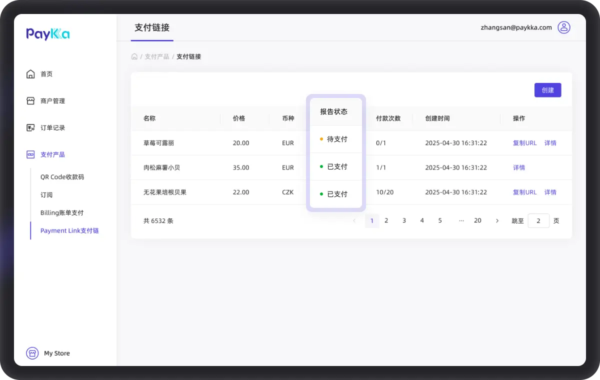 PayKKa 收单链接以零代码生成+全球支付网络为核心,让任何企业都能 30 秒拥有全球收款能力,无论是邮件、社交软件还是线下场景,客户点击链接即可完成付款,大幅降低收款门槛。